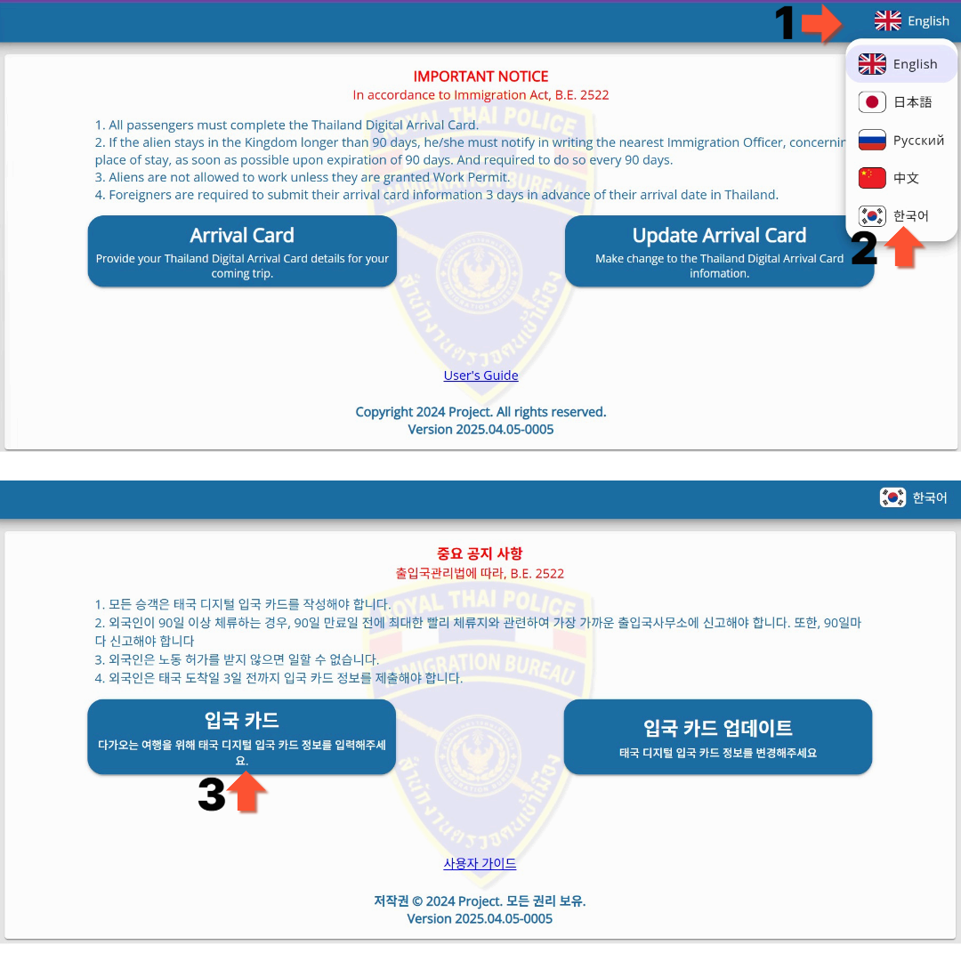 1) 태국 이민국 공식웹사이트 접속시 아래 화면을 보실 수 있습니다.