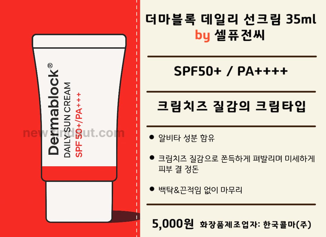 🎨 1. 더마블록 데일리 선크림 35ml (by 셀퓨전씨) SPF 50+/PA++++