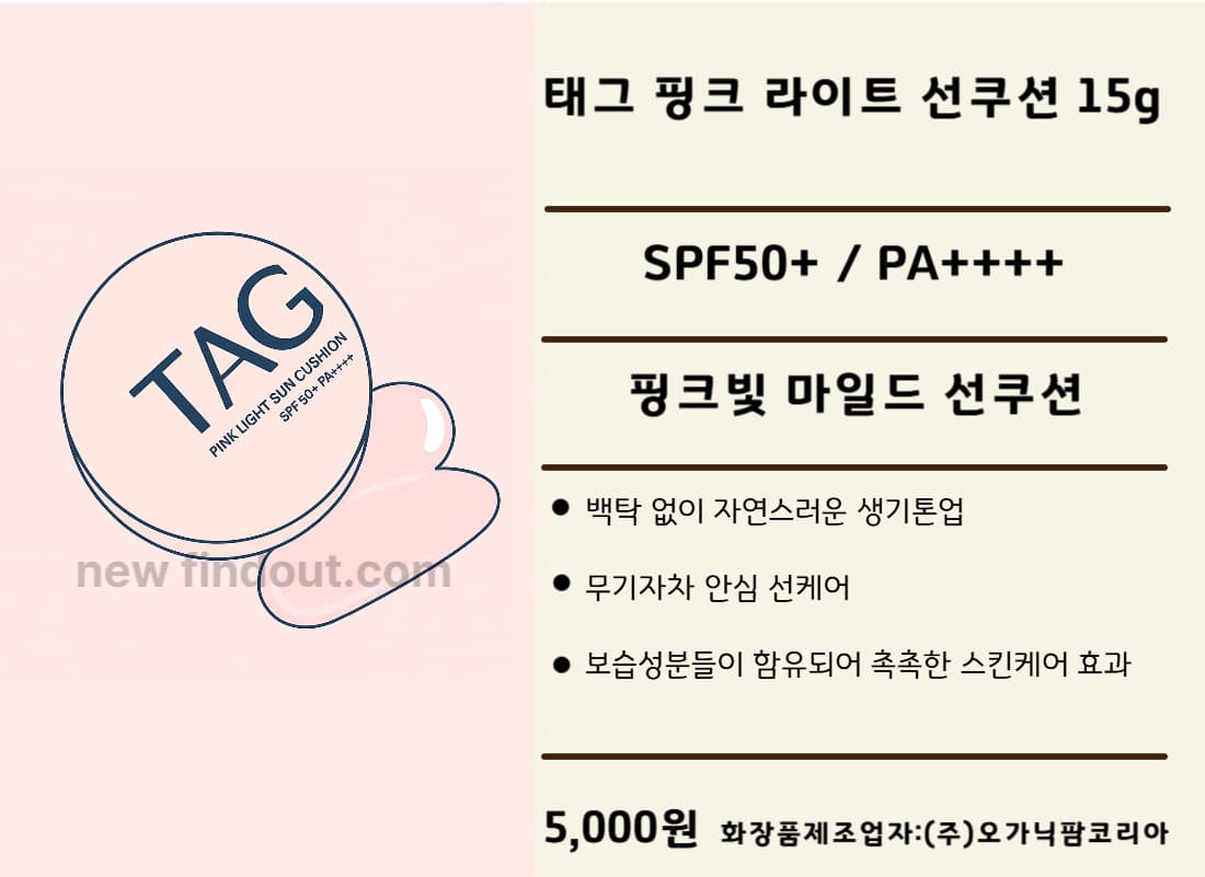 🎨 5. 태그 핑크 라이트 선쿠션 15g SPF 50+/PA++++