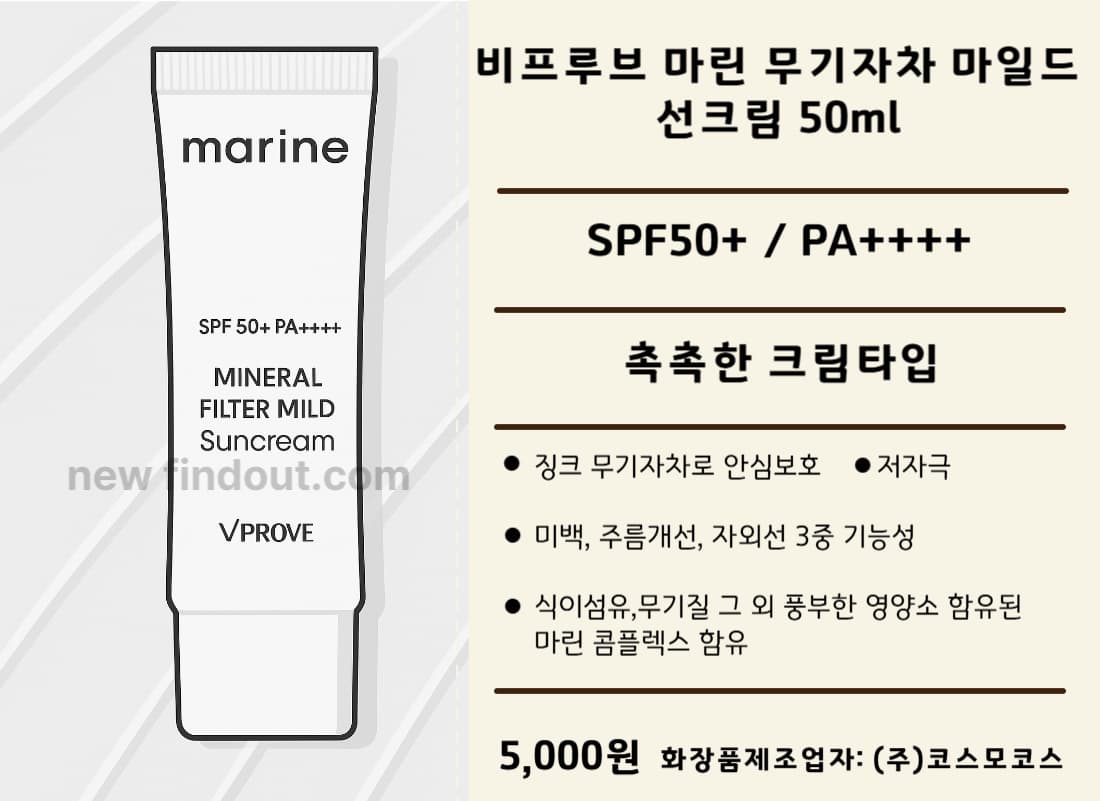 🎨 3. 비프루브 마린 무기자차 마일드 선크림 50ml SPF 50+/PA++++